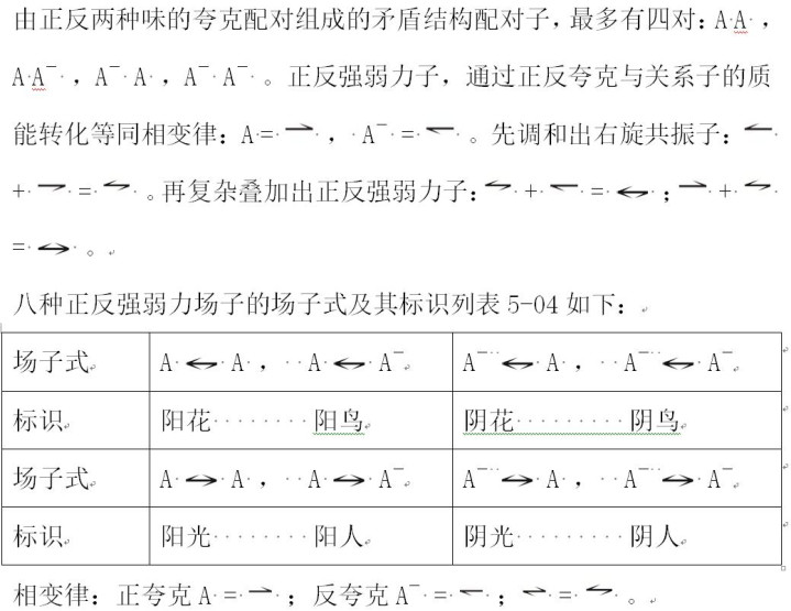 微不雅一统论以为,佩戴第五种力即正反强弱力的暗能量场子只好八种,属于16种半谐和型的矛盾场子。它们齐是由正反夸克结构配春联,以及结构配春联之间传递互相作用的复杂矛盾联系子即正反强弱力子两个构件构成。