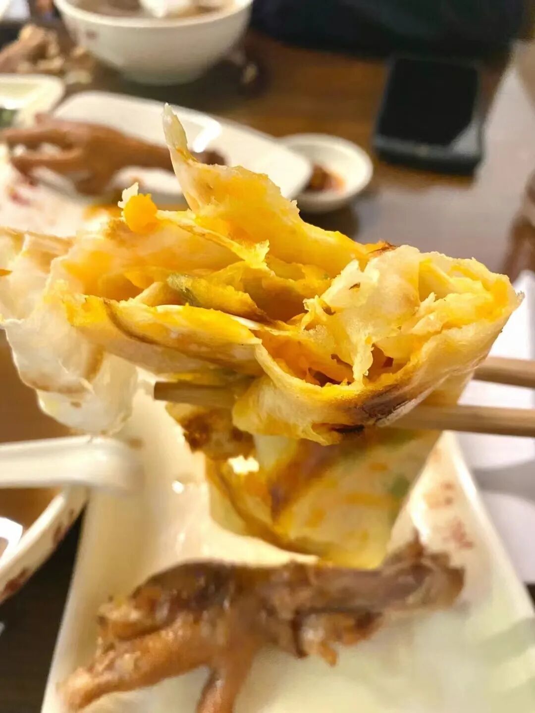 📍张记饺饼筒家的馅料就很丰富,足足有十来种,饼薄而脆,馅多而足,性价比很高!