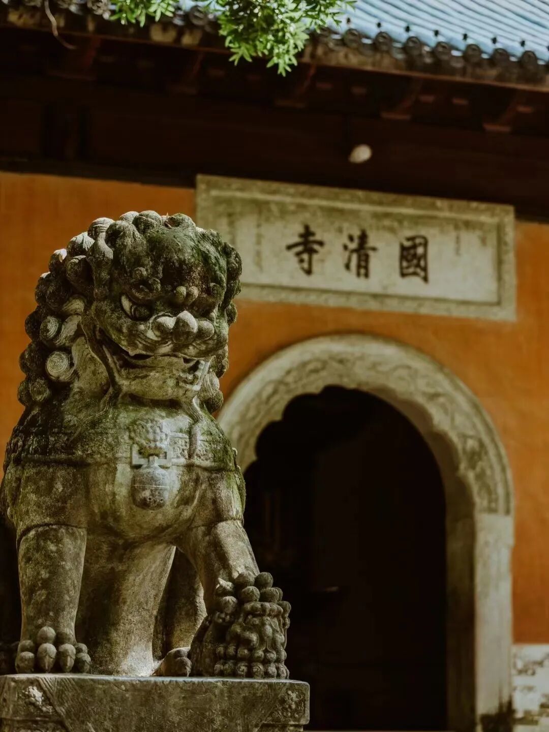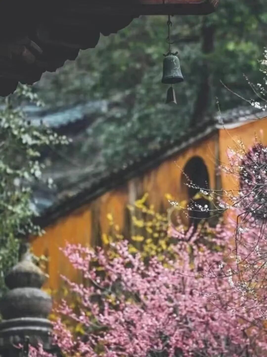 行过疏朗的竹林,走过潺潺的溪流,橙黄的寺墙绵延在斑驳光影间,明灭的烛火跃动在古旧殿阁内,芜俚地逛逛,心下便会一派成景。