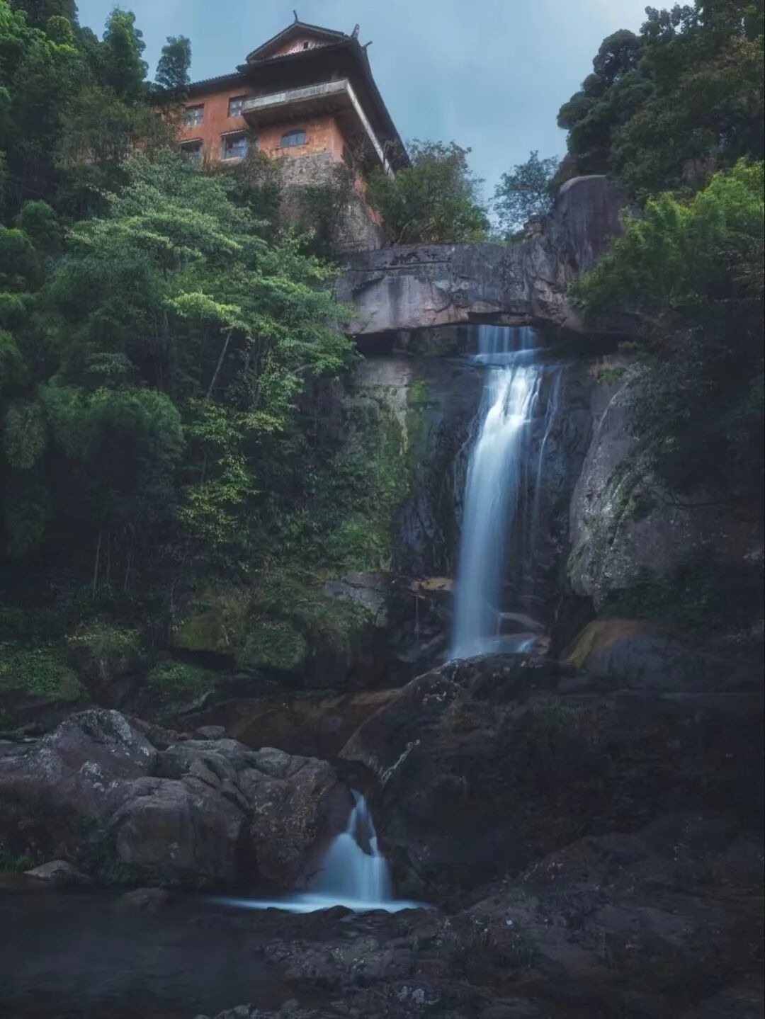 比起天台山大瀑布,石梁飞瀑则要小众得多,但它却有着“寰宇等一奇不雅”的好意思誉,徐霞客三至天台,六游石梁飞瀑,电影《少林寺》曾经来此取景。