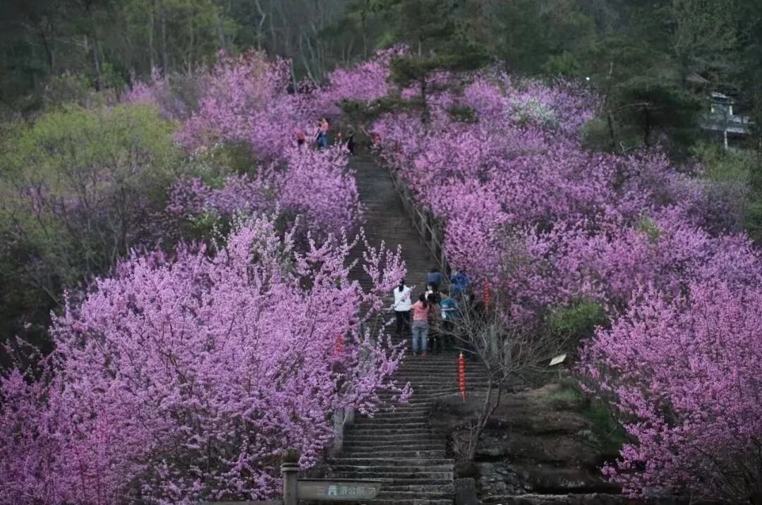 赏够了粉白的樱花杏花,不如去一回赤城山,偶遇漫天盖地的紫荆花海吧!