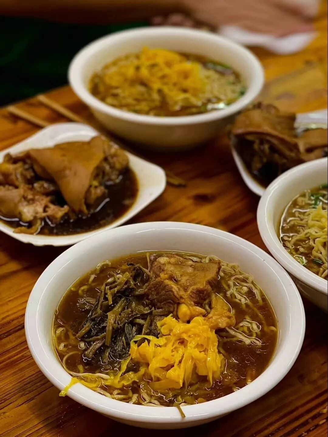 📍贤君面馆是当地开了很久的小面馆,面条应该是加了碱的,很劲说念,浇头铺得满满当当,卤过的豆干和鸭头也很可口~