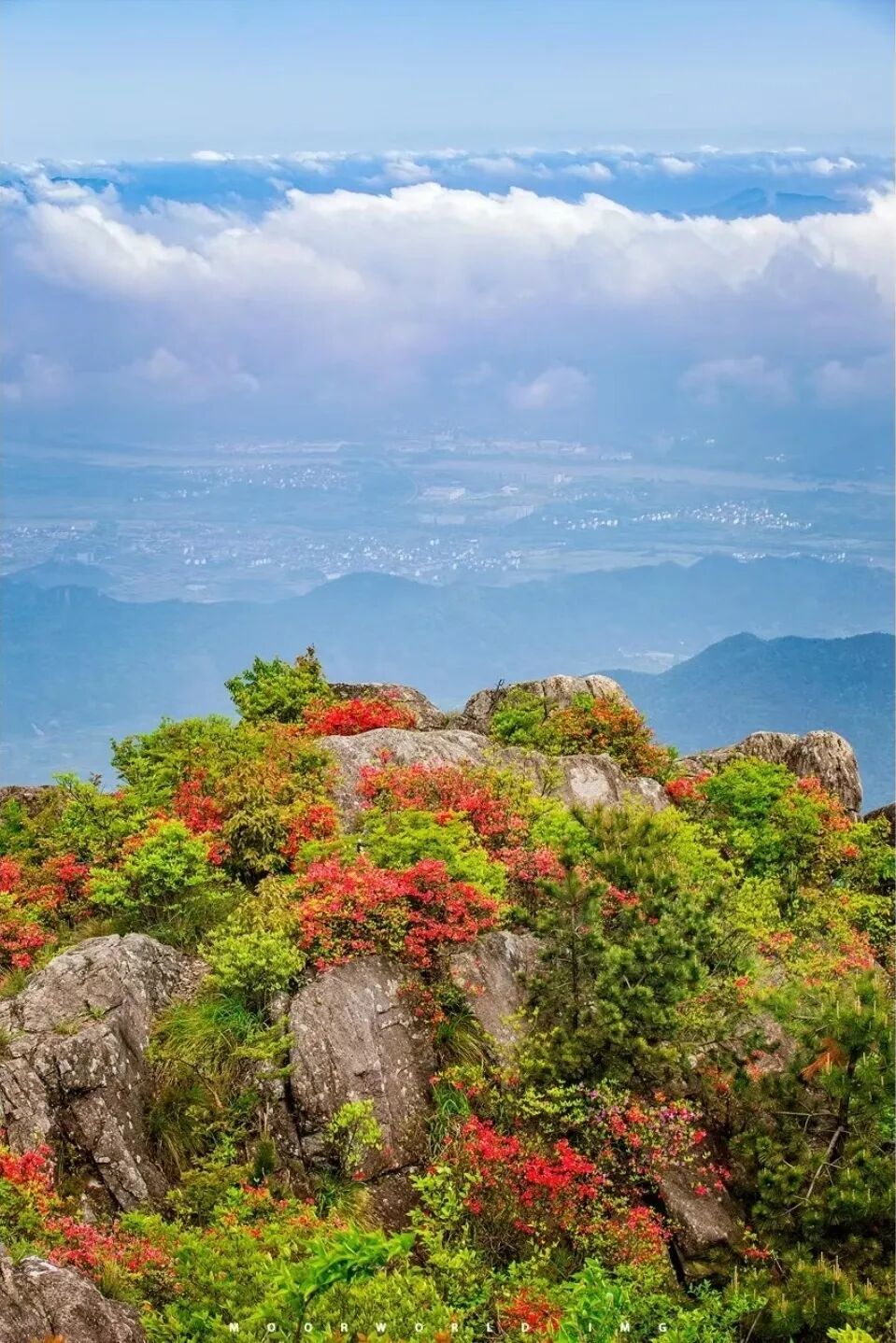 四五月的时节,300亩杜鹃林就会染红整片华顶山,朵朵秀气的杜鹃花,就盛开在千米的峻岭之巅,缥缈的云海之上,生来就带着十足的仙气。