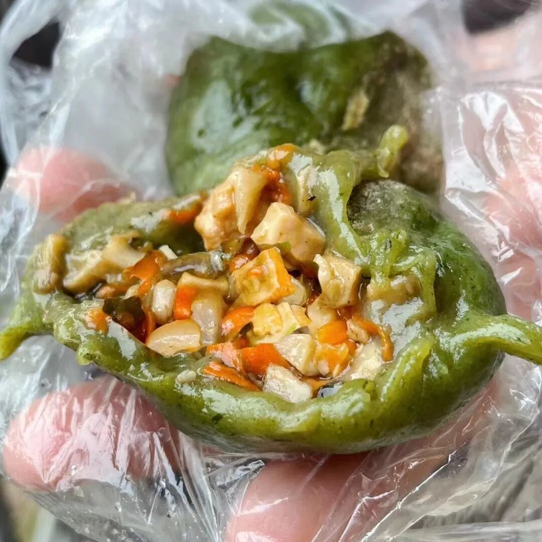 用清新的艾草青拌入糯米粉,作念成翠绿欲滴的饺皮,包上多少肉丁,笋丁,豆腐干,红萝卜,大头菜等,进口软糯而不粘牙,淡淡的草木气味在唇齿间飘飖。