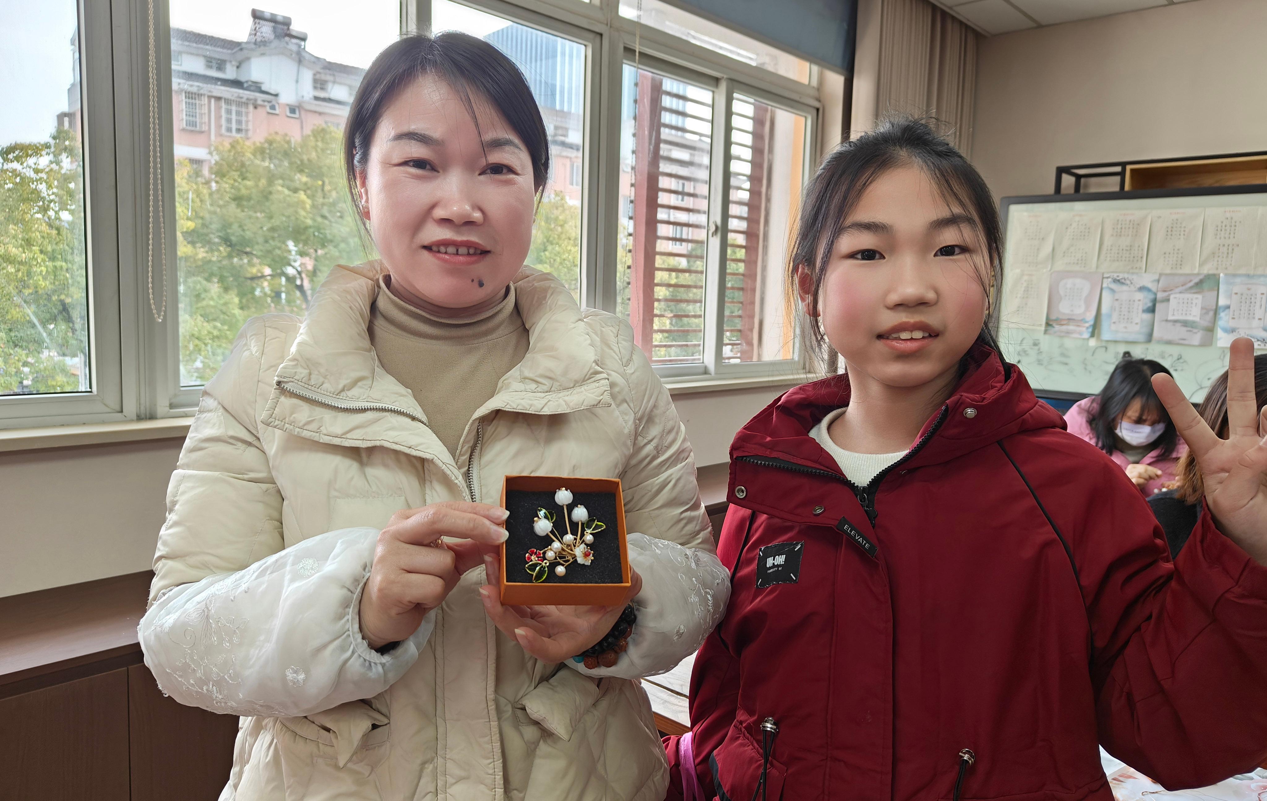 经过一个多小时的全心制作,一枚枚唯一无二、精粹别致的胸针在世界手中出身。有的典雅大方,有的俏皮可儿,有的则充满了童趣。看着我方亲手制作的效用,每个东谈主的脸上齐飘溢着自重与答允的笑脸。世界纷繁将胸针率领在衣襟上,拍照眷恋,纪录下这好意思好的蓦然。