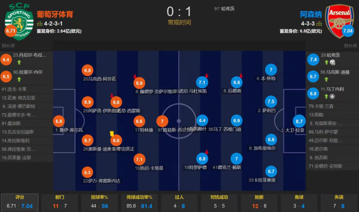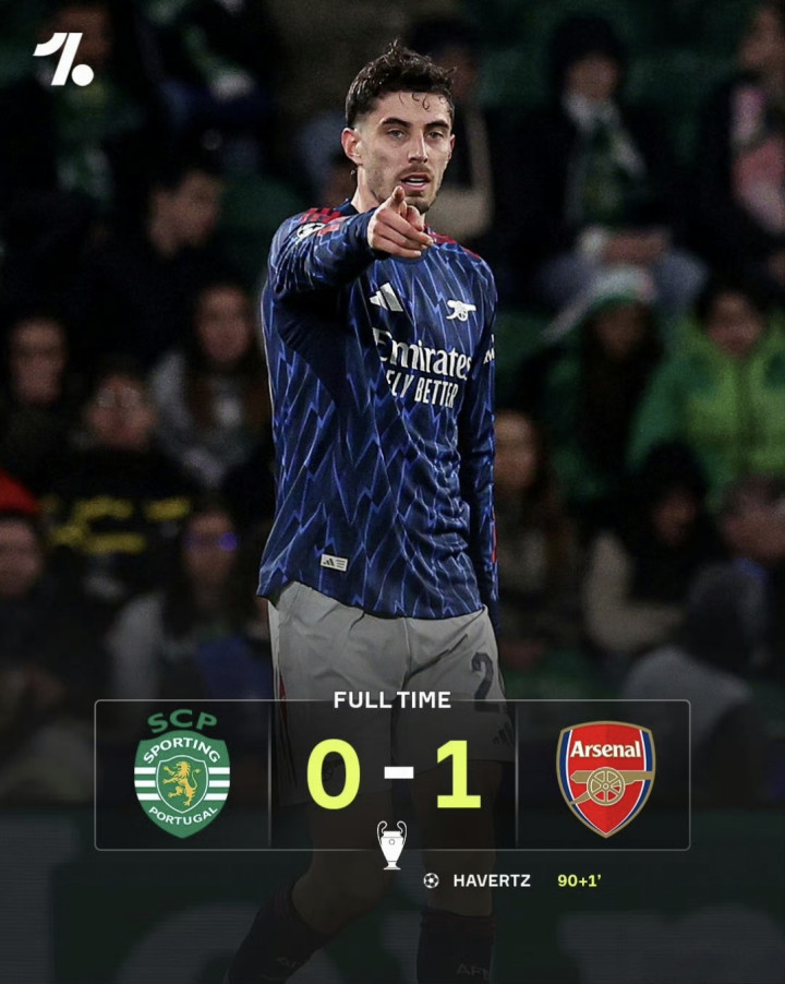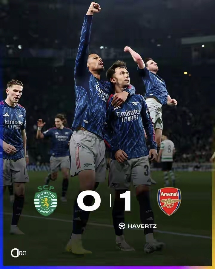 ①阿森纳客场1-0葡萄牙体育,哈弗茨绝杀,苏比门迪进球被吹