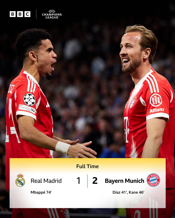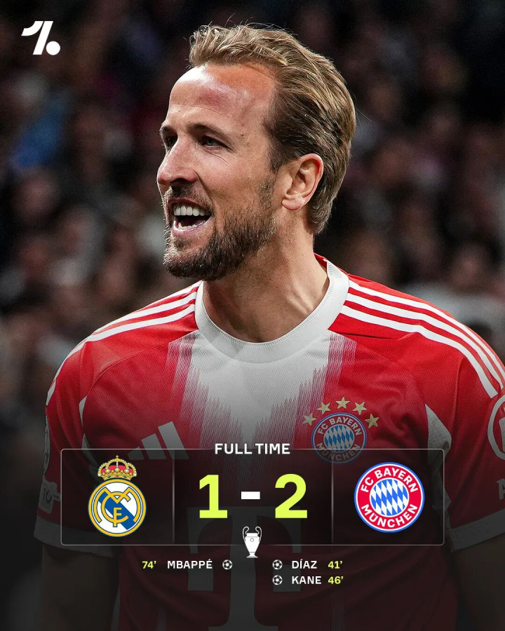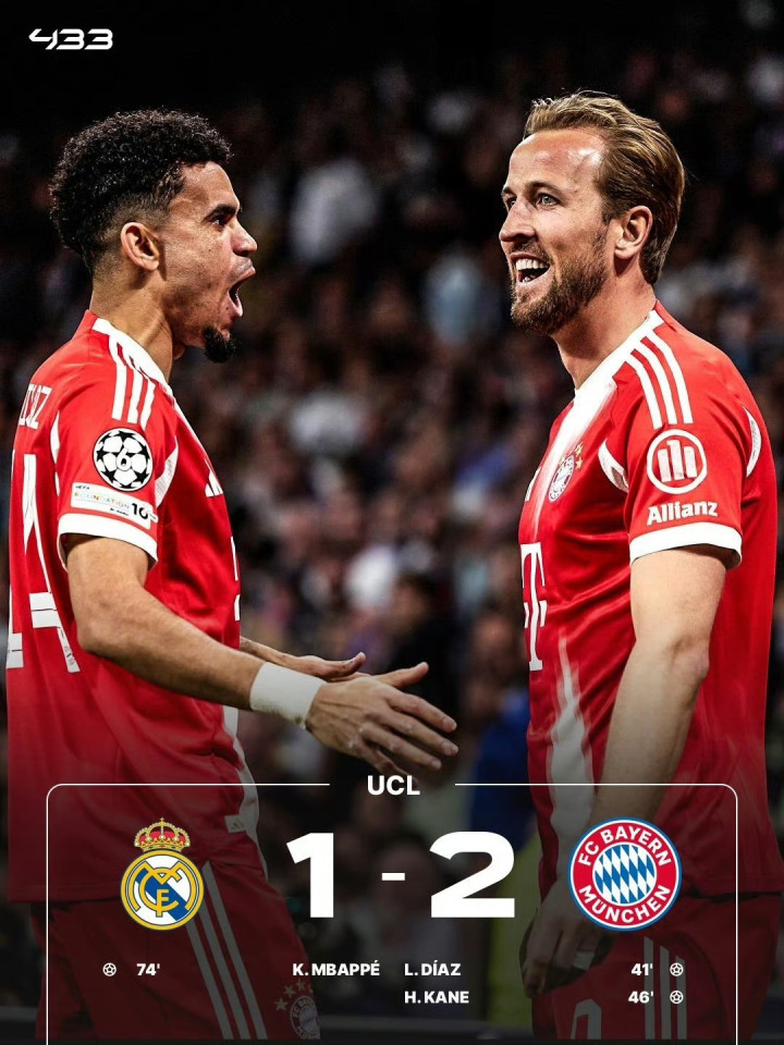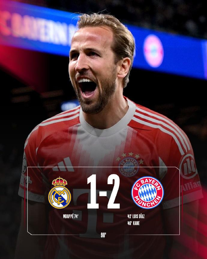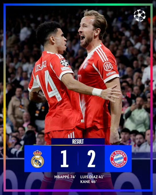 ②攻克伯纳乌!拜仁2-1客胜皇马,姆巴佩破门难救主,凯恩、迪亚斯立功,皇马遇到各项赛事两连败
