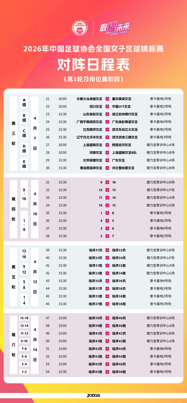 确认2026年世界女足竞赛狡计安排,小组赛第三轮截至后,干涉排位赛阶段的1-8名队伍和9-16名队伍将一说念产生。排位赛阶段比赛将于4月10日认真运转。具体赛程如下: