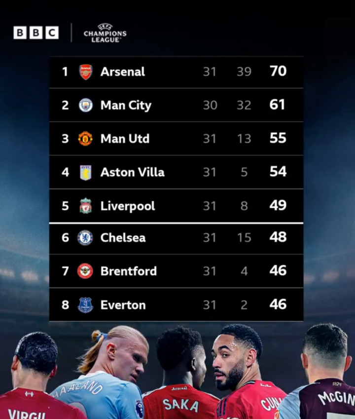 英超及时积分榜 欧冠阅历争夺演酿成争五大赛