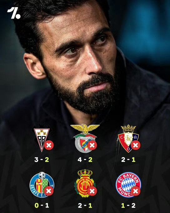 拜仁慕尼黑成为历史上第六支打败阿尔韦罗亚执教的皇家马德里的球队⚪️