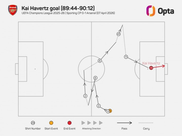 北京时间4月8日03:00,2025/26赛季欧冠联赛1/4决赛首回合,阿森纳作客阿尔瓦拉德球场对阵葡萄牙体育。上半场,阿劳霍错失一次单刀良机,马杜埃凯开角球径直击中横梁弹出。下半场,苏比门迪远射破门被判越位进球无效,马丁内利助攻哈弗茨单刀破门演出绝杀。最终葡萄牙体育0-1阿森纳。