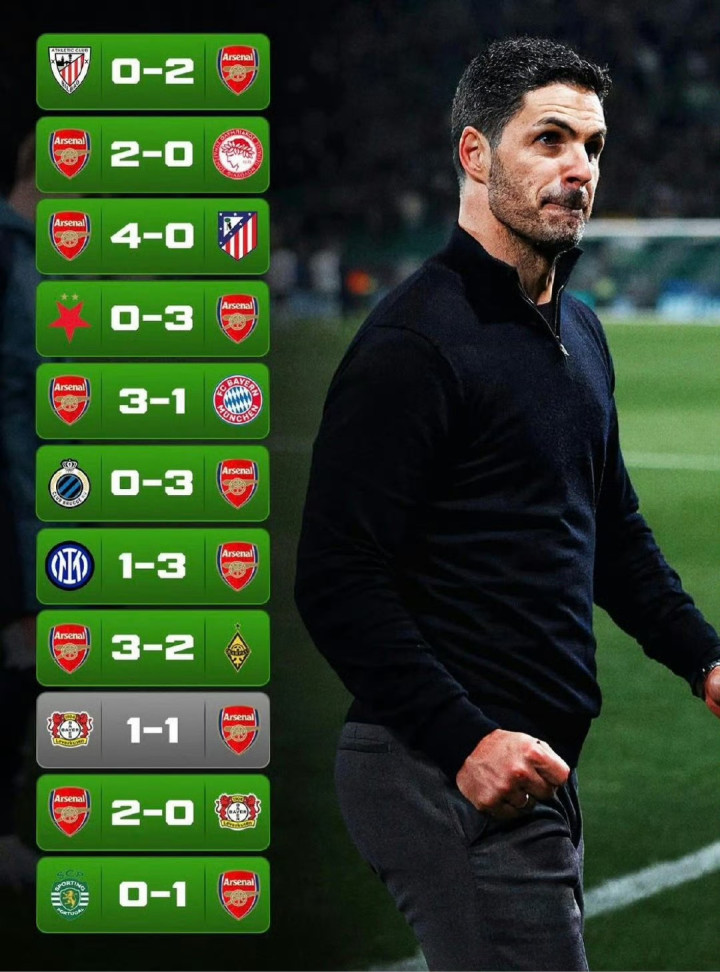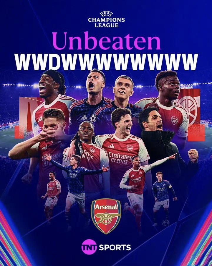 阿森纳本赛季是欧冠独一保抓不败的球队