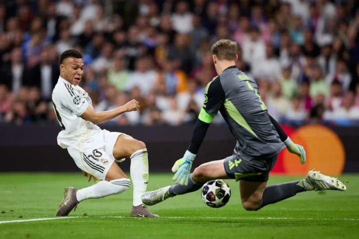 第74分钟,贝林厄姆有计划,阿诺德低平球传中助攻姆巴佩包抄抢戳破门,皇马1-2拜仁。