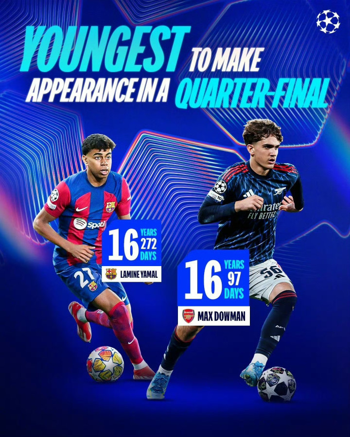 说念曼以16岁97天的年龄成为欧冠历史1/4决赛登场的最年青球员!