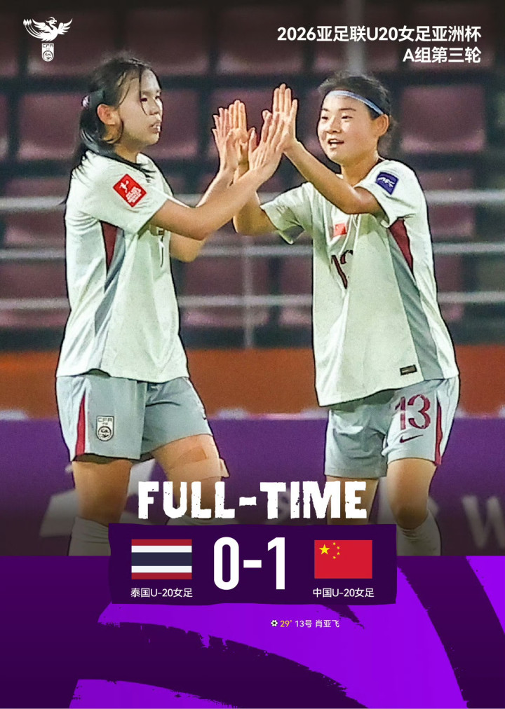 U20中国女足1-0泰国女足U20全胜头名出线,肖亚飞制胜