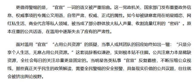 其次,官媒严肃指出中枢乱象:滥用“官宣”两个字,消解群众言语的严肃性,