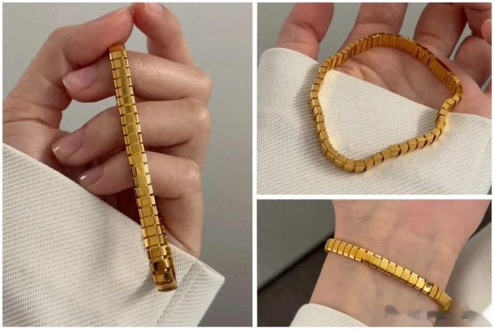 谁懂啊!职场东说念主最怕首饰“牵累”,很是是要么勒手,要么太惊愕的。而这款方块连环蓄意的手链,几乎是“通勤天菜”。它是许多几何小金块不息而成的,蓄意极简高档,戴在手上灵动,不压手。