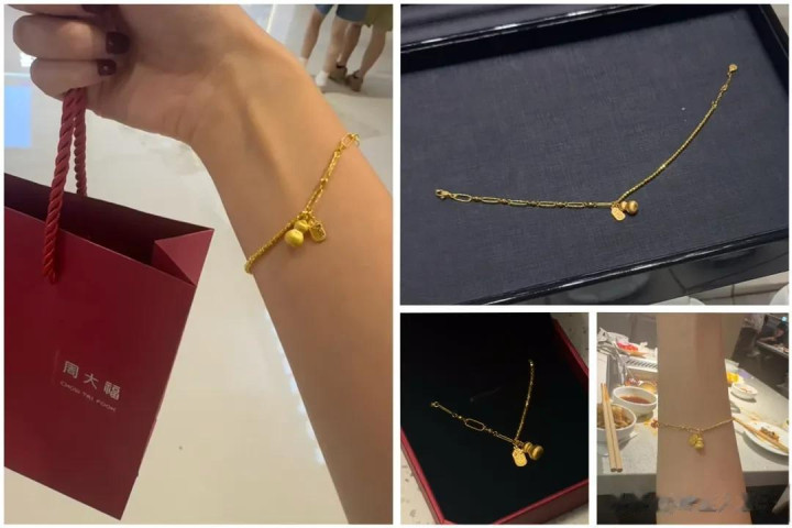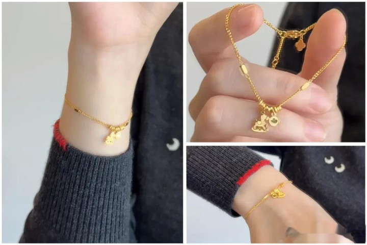 谁会终止“会话语”的首饰啊!这款手链把谐音梗+黄金玩出花!碎金子滑动+小马+元宝,“$”随即“吻”上来(谐音梗扣钱但可儿!),寓意“随即有钱”。
