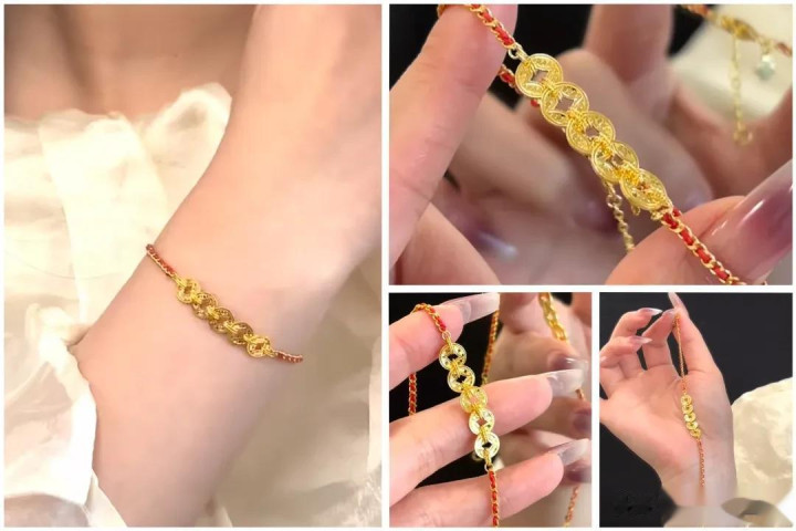 “碎金+五帝钱+红绳”的组合,澳门赌城真真把传统寓意和当代审好意思焊死了!碎金工艺让它的名义像“碎钻”相通细闪,五帝钱(招财象征)+红绳(转运buff),戴在腕间“小金光”晃眼,谁看了不说句“财迷狂喜”。